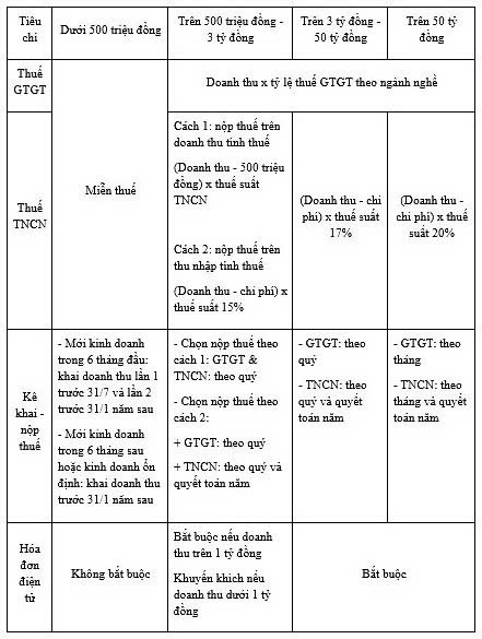 - Nhóm 3: HKD có doanh thu năm trên 3 tỷ đồng đến 50 tỷ đồng