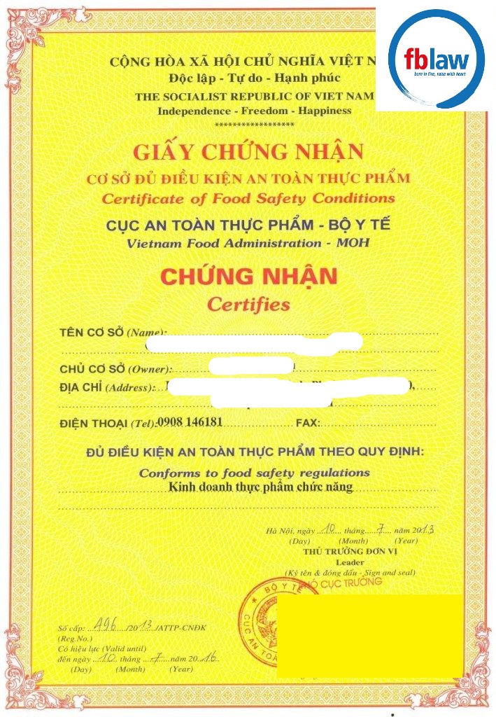 Dịch vụ tư vấn, xin cấp Giấy chứng nhận an toàn thực phẩm của Công ty Luật FBLAW