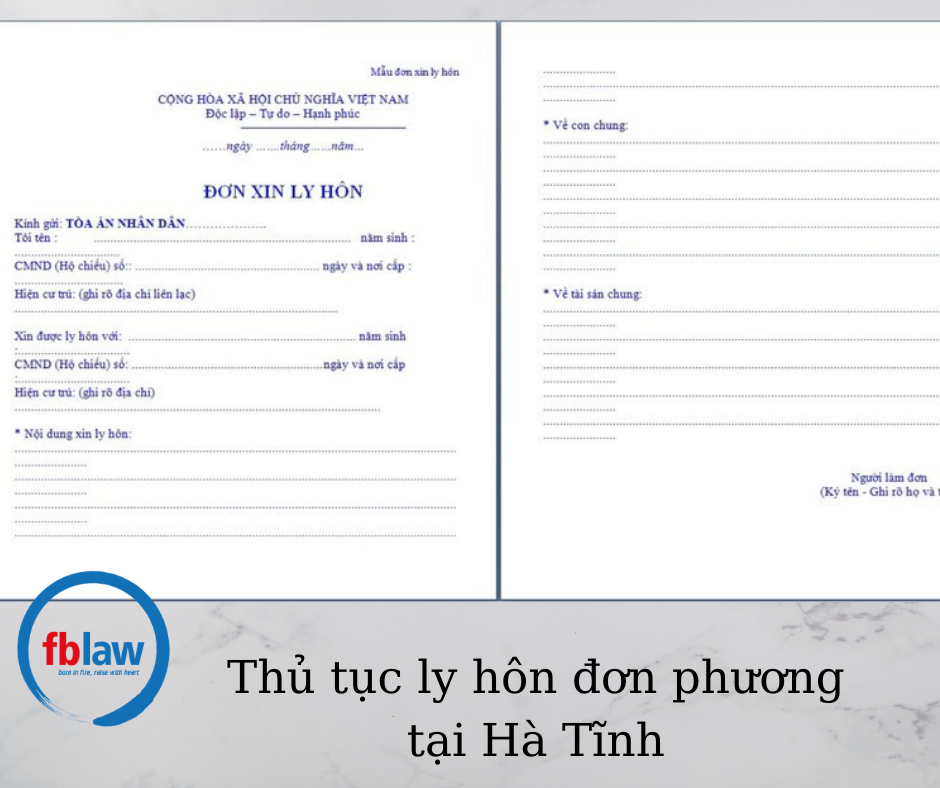 Thủ tục ly hôn đơn phương tại Hà Tĩnh giúp hiểu rõ hơn về các trình tự khi có mong muốn được trợ giúp trong cuộc hôn nhân không mỹ mãn khi mà trong cuộc sống có những điều xảy ra chúng ta không thể lường trước được. Vì vậy, việc có được lựa chọn ly hôn theo yêu cầu của một bên hay không đang là câu hỏi, vấn đề đặt ra của nhiều người. Hãy cùng công ty Luật FBLAW tìm hiểu qua bài viết dưới đây: